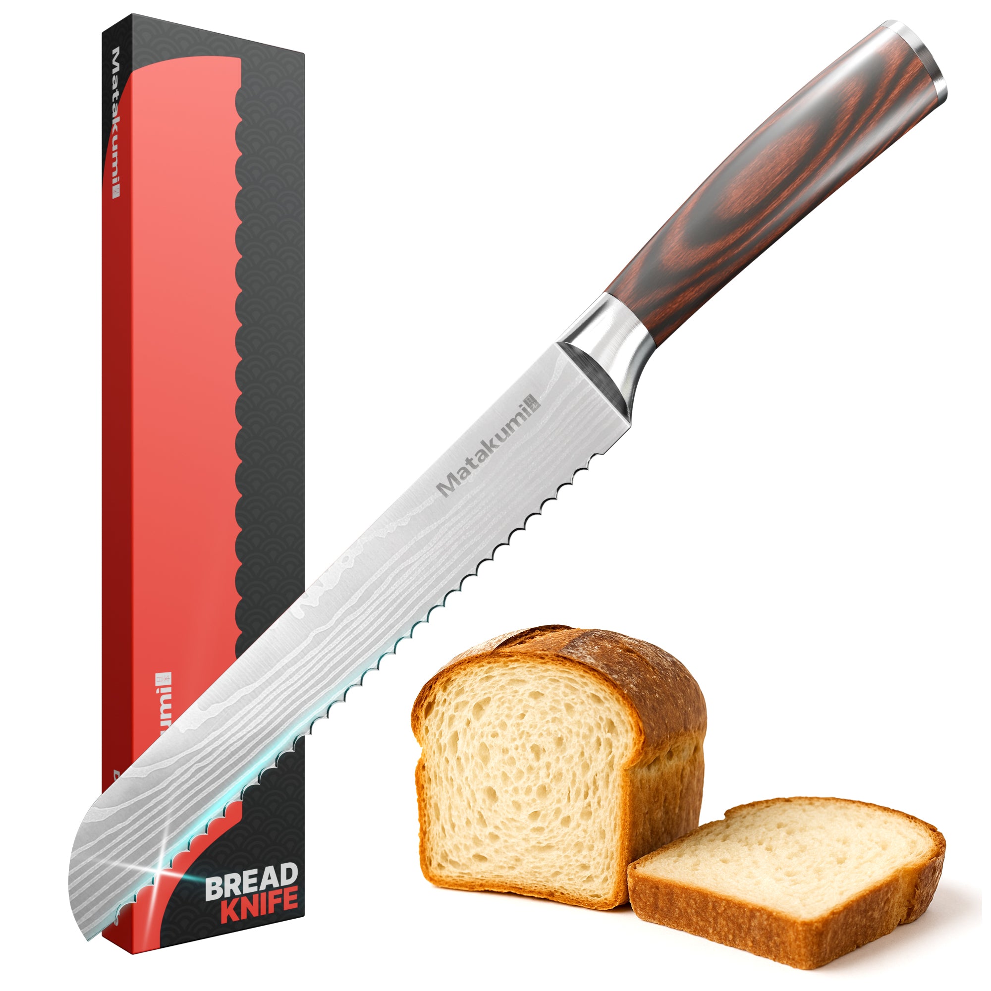 Dit broodmes in japanse stijl is perfect voor het moeiteloos snijden van brood, gebak en andere zachte etenswaren. Het 19 cm golvende lemmet snijdt door harde korsten zonder de zachte binnenkant te beschadigen. Het ergonomische handvat biedt een stevige grip, zelfs bij langdurig gebruik, terwijl het carbonstalen lemmet met een HRC van 58 scherp en duurzaam blijft. Ideaal voor elke bakliefhebber!
